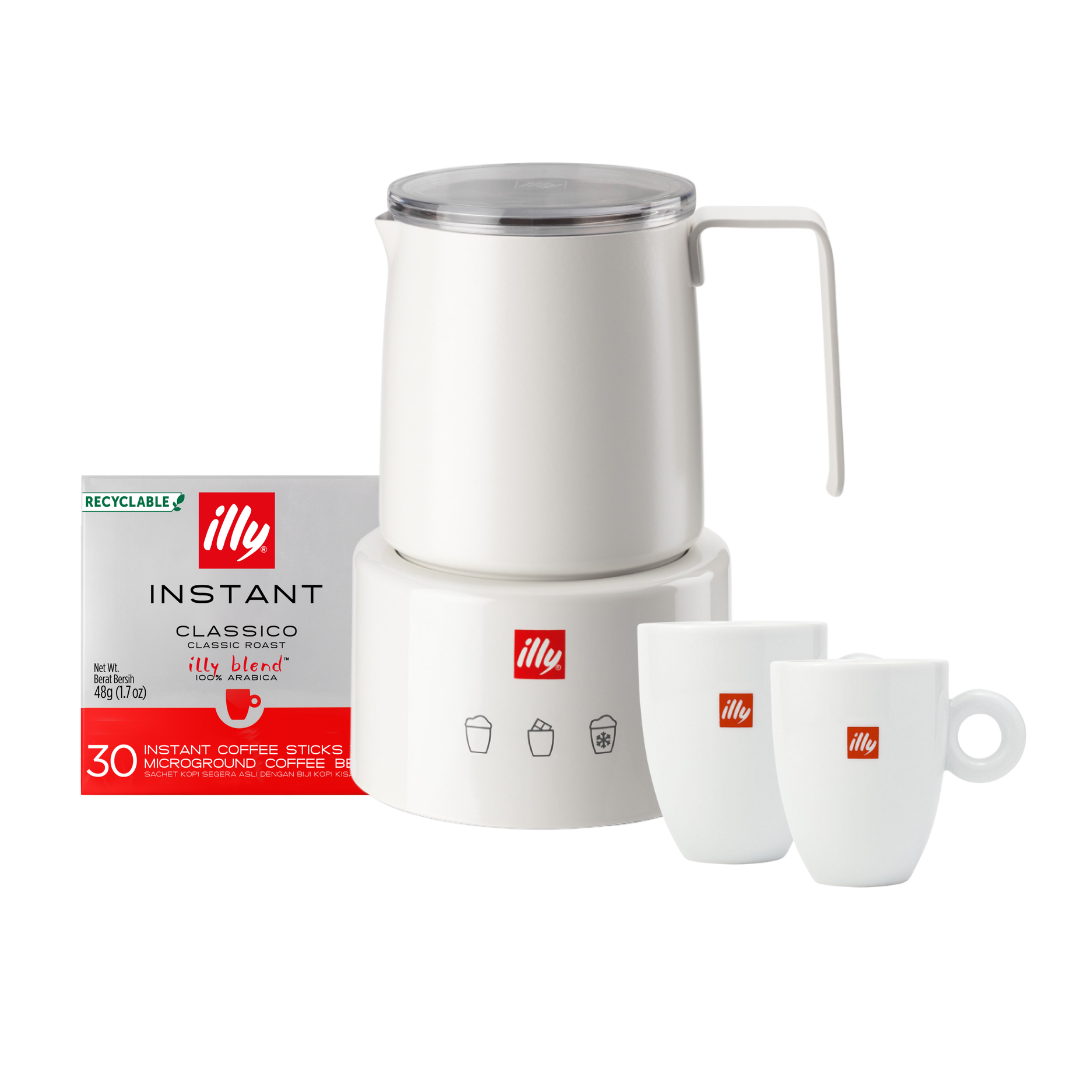 The illy Electric Milk Frother makes it easy to create beautiful milk based recipes right in your own kitchen. This compact frother with sophisticated and intuitive touch controls is the ultimate in versatility, allowing you to make hot or cold foamed milk, warm steamed milk and even hot chocolate. Best of all the modern, elegant design from Piero Lissoni, renowned Italian Architect and designer, adds a touch of style to your kitchen.