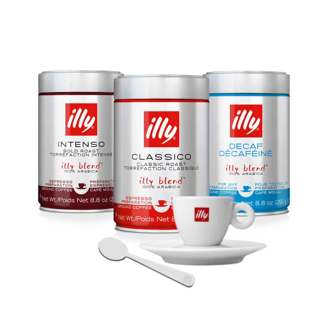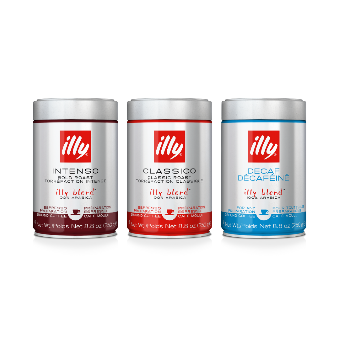 illy ground espresso coffee is finely ground to provide optimal extraction with espresso machines that accept ground, tamped coffee. illyâs distinctive blend of fine Arabica coffees with a smooth, rich and full-bodied taste is created from the skillful blending of 100% sustainably-grown Arabica beans, meticulously selected from different growing regions around the world. The result is an authentic Italian coffee that is flawlessly consistent, smooth, balanced, and never bitter.  Using an exclusive process, illy coffee is packed in an air-free, pressurized can that enhances and seals in the precious aromas and oils, so you enjoy the freshest taste  â cup after cup.