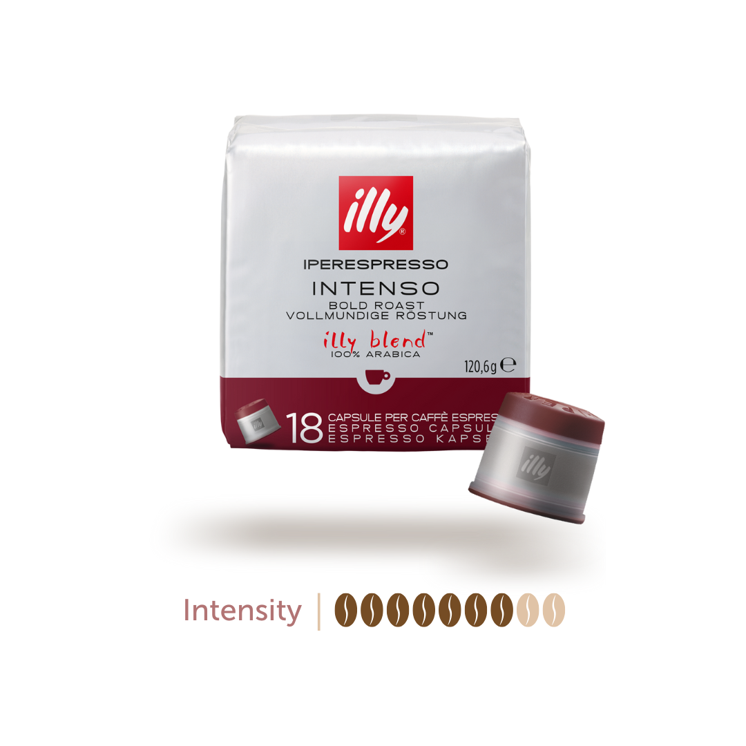 Our unique illy blend of 100% Arabica coffee beans is available in 2 distinct roasts; Classico & Intenso, each with a different intensity.Classico is the most mild of the 2 with a beautifully balanced taste and notes of caramelIntenso is a dark, intense and full-bodied coffee with notes of cocoa and dried fruit.