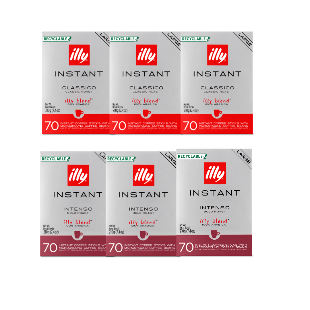 Our unique illy blend of 100% Arabica coffee beans is available in 2 distinct roasts; Classico & Intenso, each with a different intensity.Classico is the most mild of the 2 with a beautifully balanced taste and notes of caramelIntenso is a dark, intense and full-bodied coffee with notes of cocoa and dried fruit.